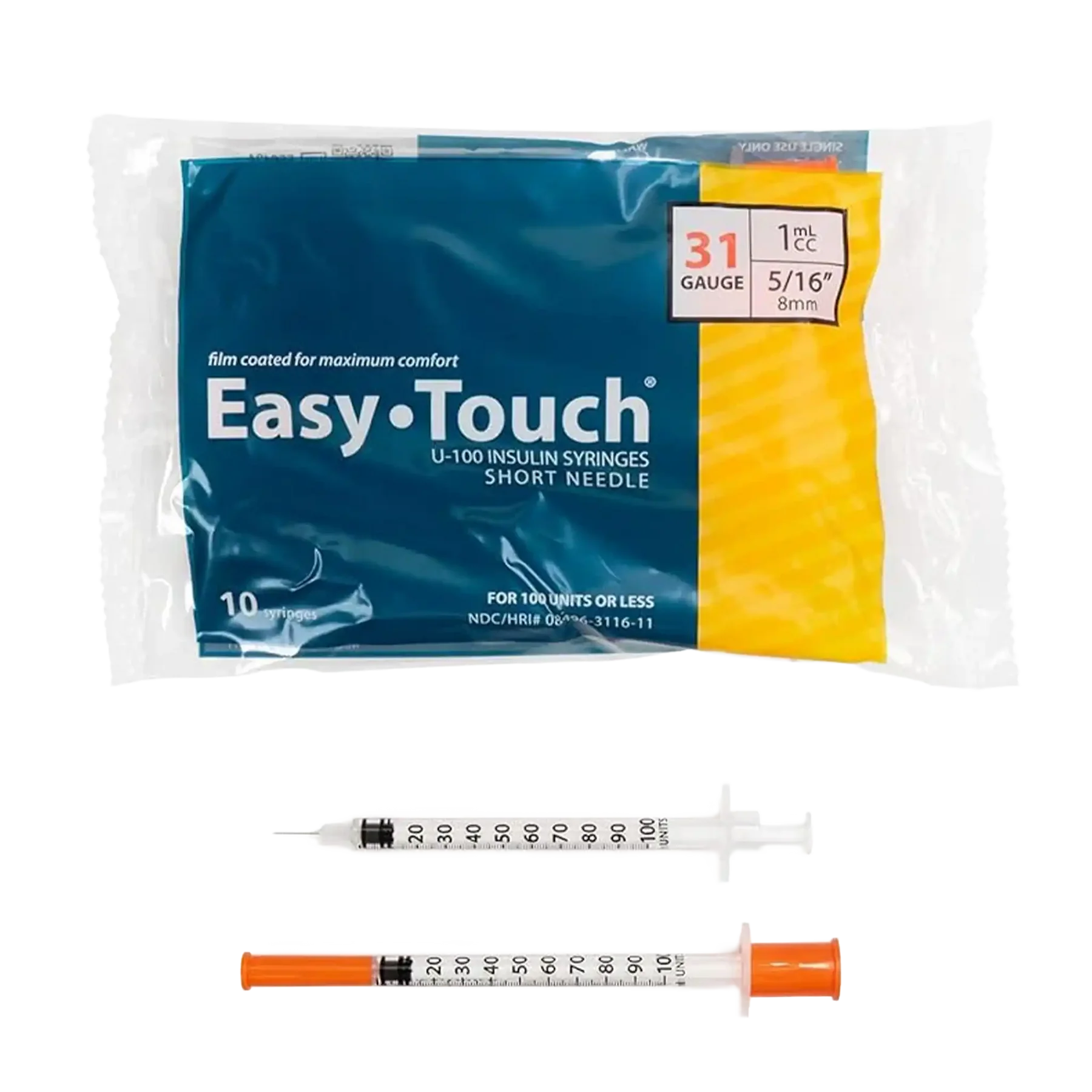EasyTouch Insulin Syringe – 31G 1CC 5/16″ – Polybag of 10ct