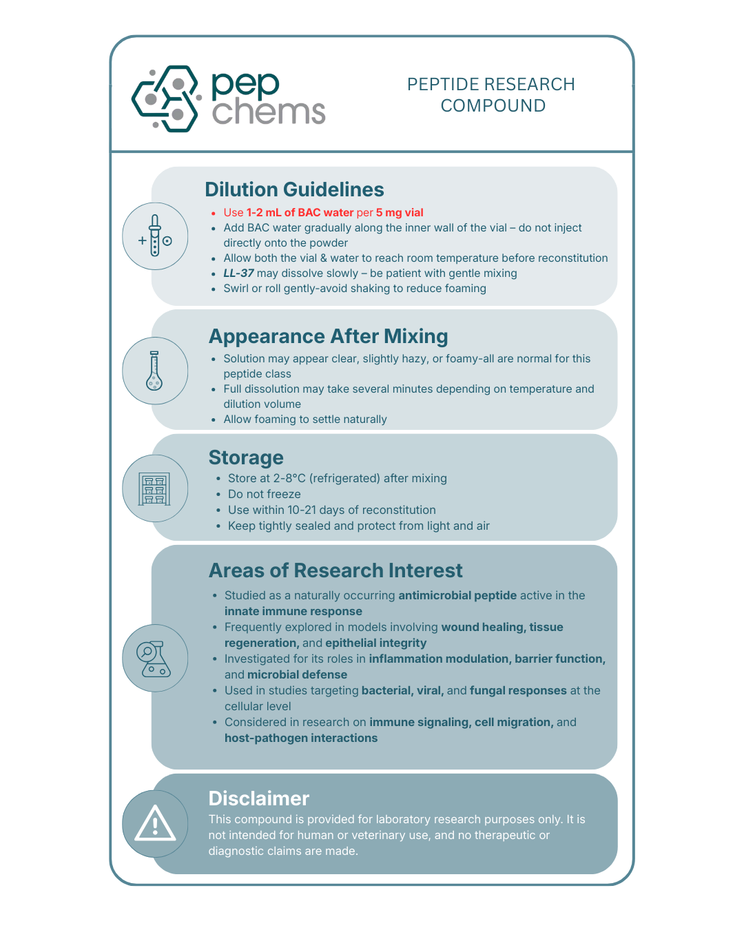 • Compound Type: synthetic 37-amino acid cathelicidin-derived antimicrobial peptide